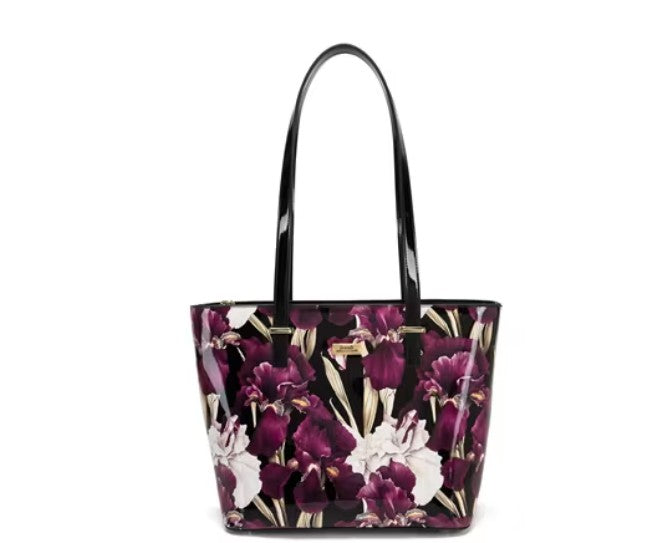 This Serenade Beverly Hills Collection Charlotte leather tote bag is perfect for everyday. Crafted from premium leather with a patent finish. The Charlotte bag opens easily and features a central zippered compartment as well as two magnetic snap closure compartments.