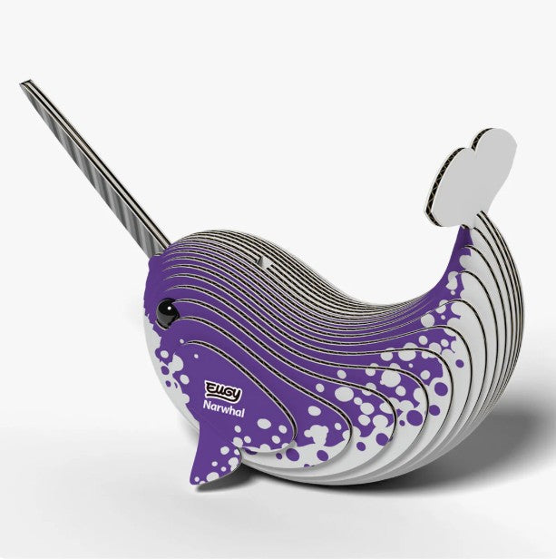 Dive into the world of the Arctic with the EUGY Narwhal, a charming 3D puzzle that brings the 'unicorn of the sea' to life. This eco-friendly collectible is crafted from sustainable cardboard and features the narwhal's distinctive spiral tusk and playful personality.