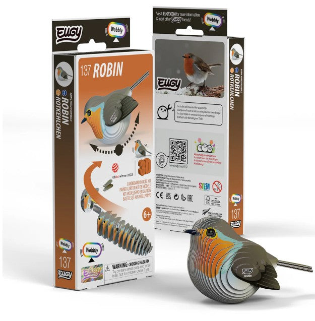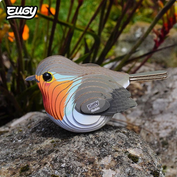 Meet the EUGY Robin – a charming 3D puzzle that brings this beloved bird to life! This eco-friendly collectible is made from sustainable cardboard and features the robin's distinctive red breast and friendly character.