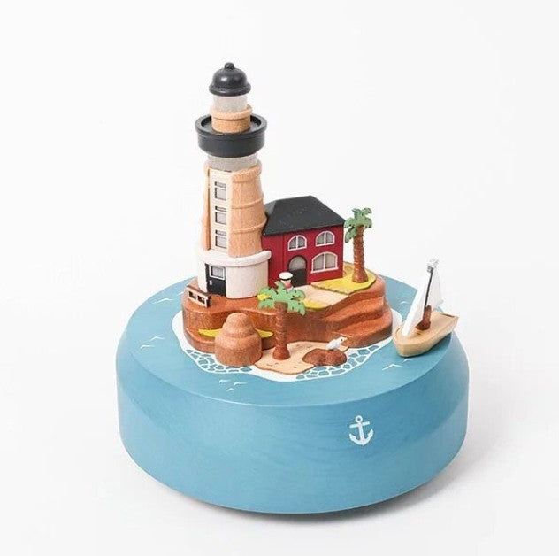Sailboat and Lighthouse - Wooden Animated Light with Music